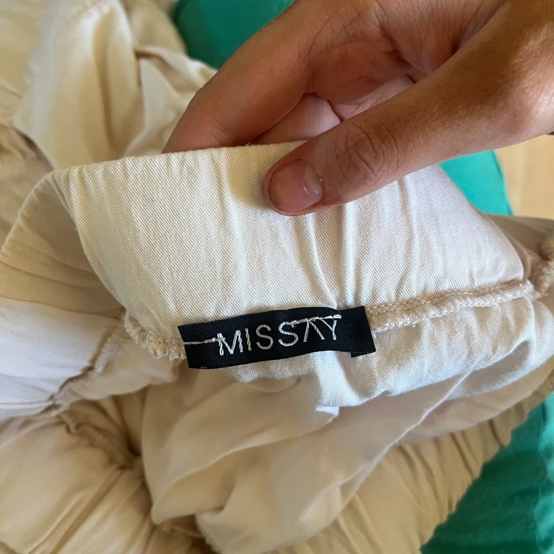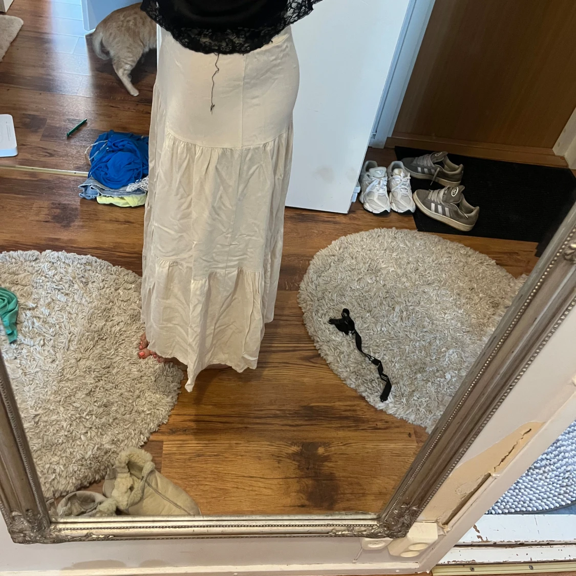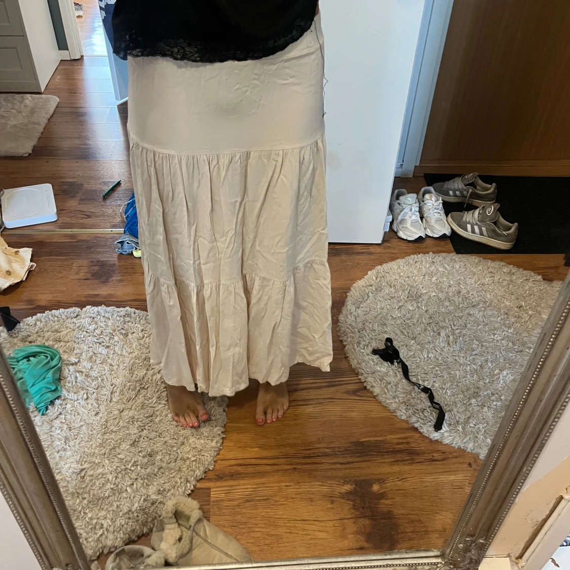 Säljer en elegant beige långkjol från Missy. Kjolen har en luftig passform och är perfekt för varma dagar. Den är tillverkad i ett mjukt material som ger en skön känsla. Passar utmärkt till både vardag och speciella tillfällen.