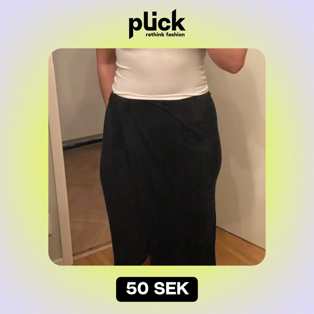 Säljer en stilren svart långkjol i bra skick. Kjolen har en enkel och elegant design. Den är gjord i ett mjukt och bekvämt material som faller fint längs kroppen.