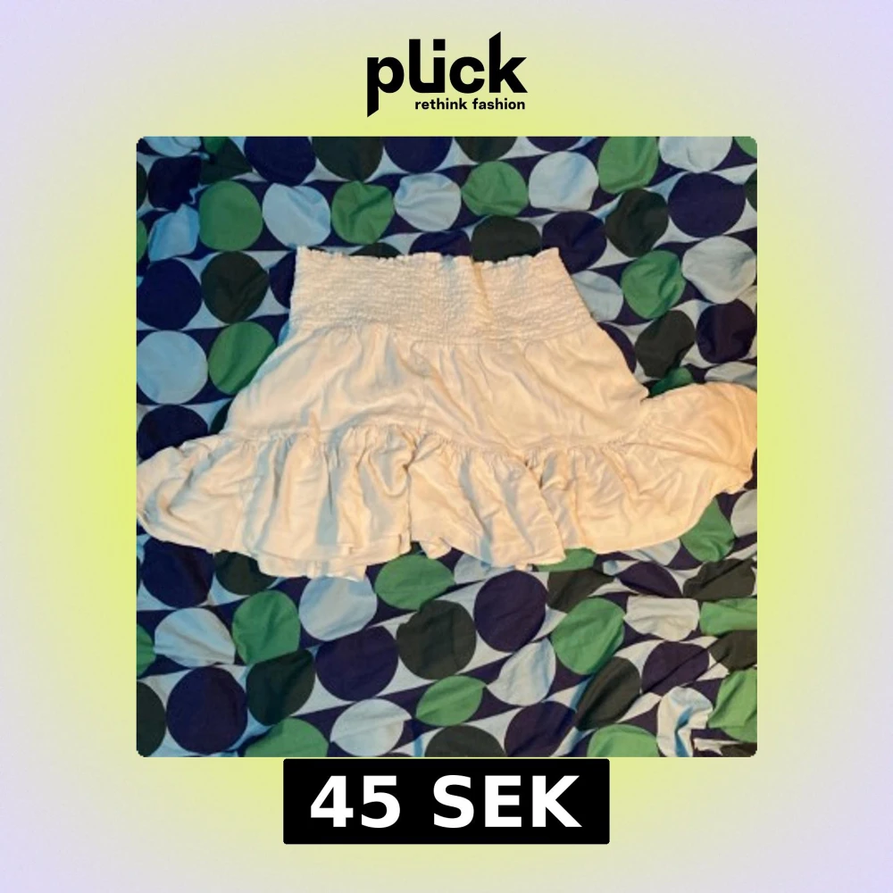 Supersöt vit kjol från 157 med bred smock i midjan och volang nertill. Kjolen är kort och har en luftig känsla, perfekt för varma dagar. Enkel att matcha med olika toppar för en fräsch look.