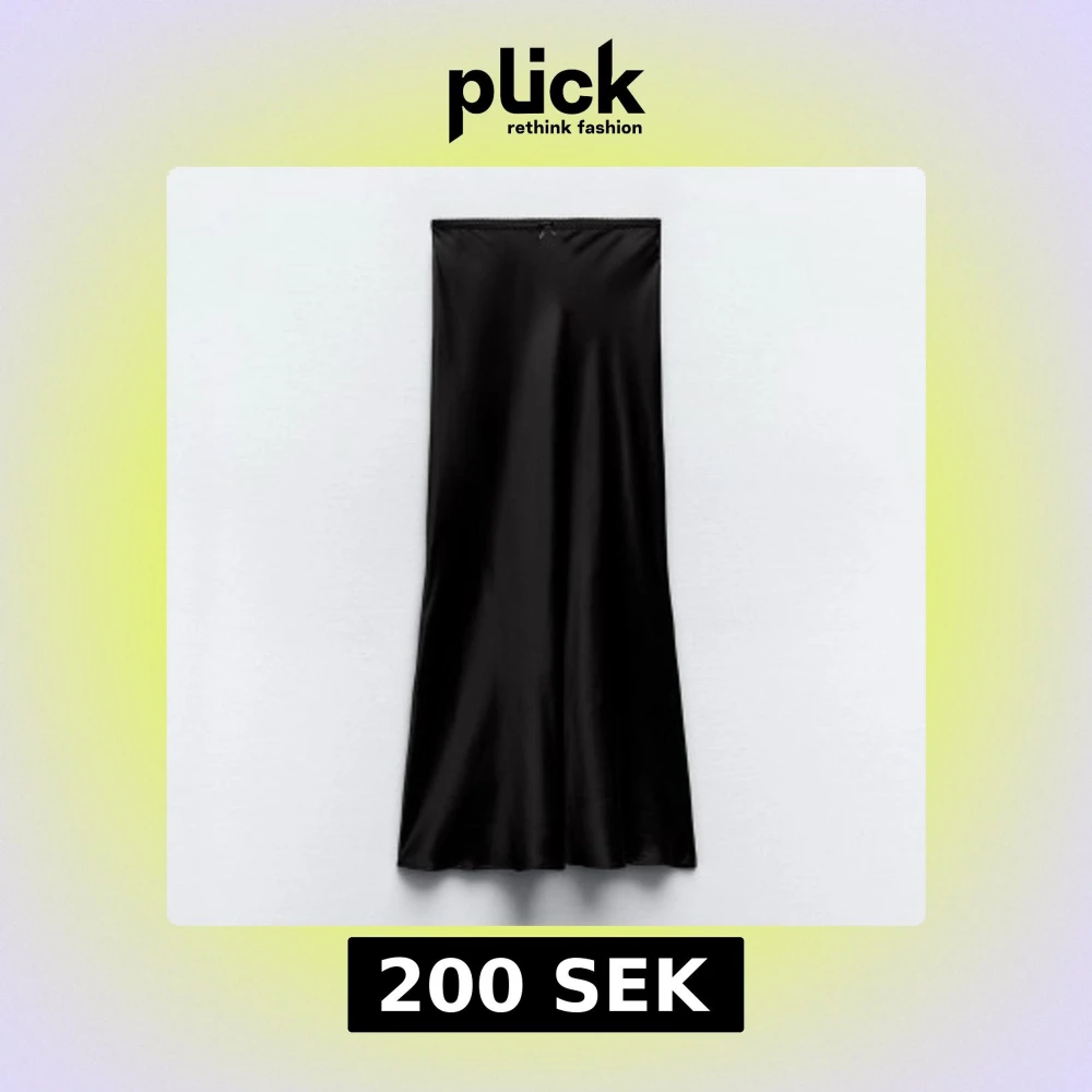 Svart långkjol i siden Stl S från Zara. Kjolen har en liten roset längst fram.