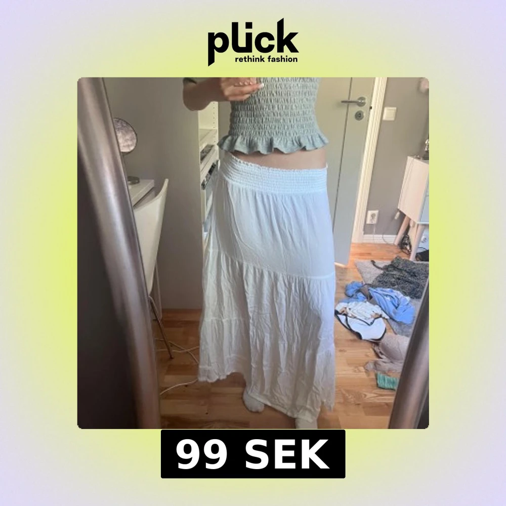 Vit långkjol med smock i midjan