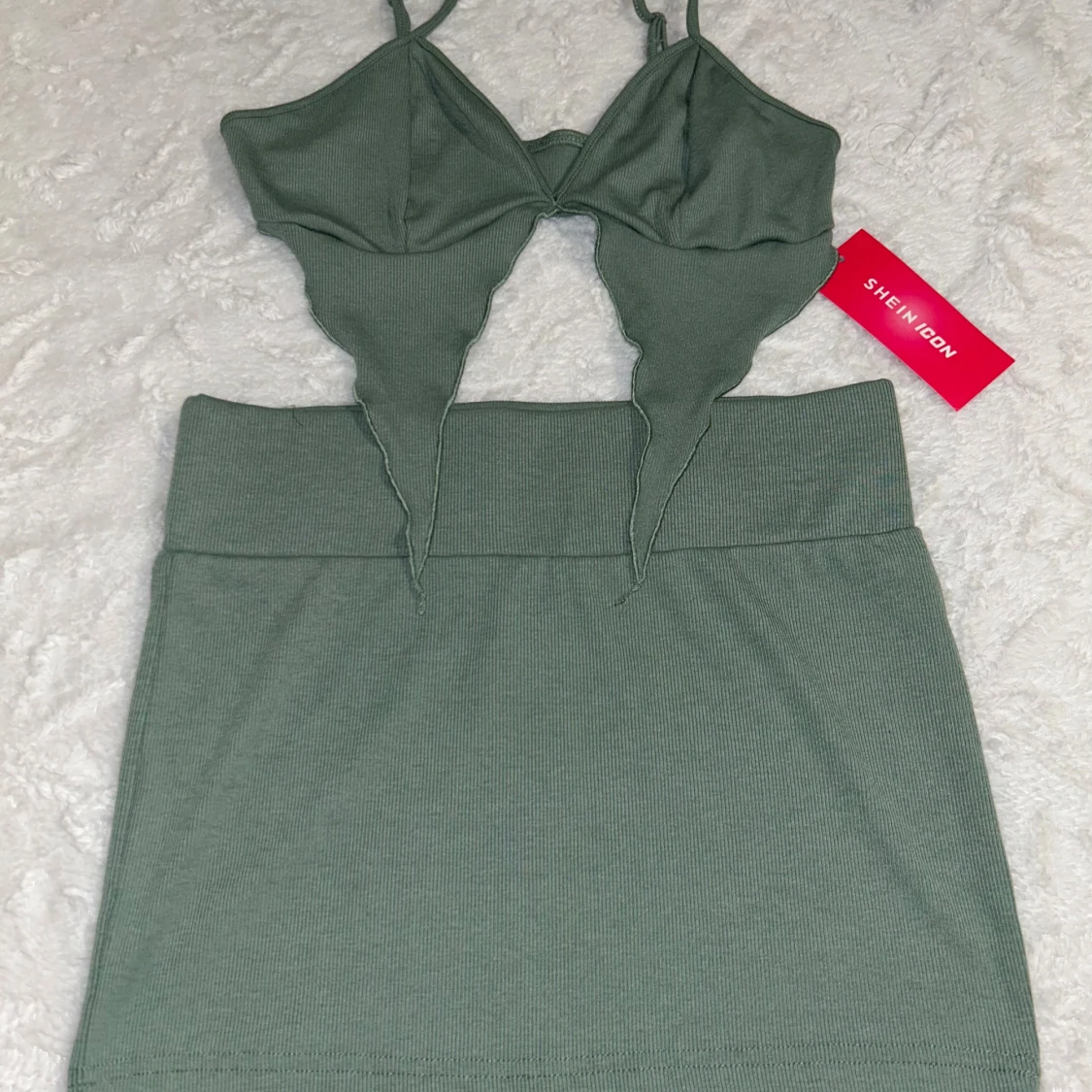 Snygg grön ribbad kortkjol och topp från SHEIN i stretchigt material. Helt nytt set och ger en snygg siluett. Skriv vid frågor 🥰