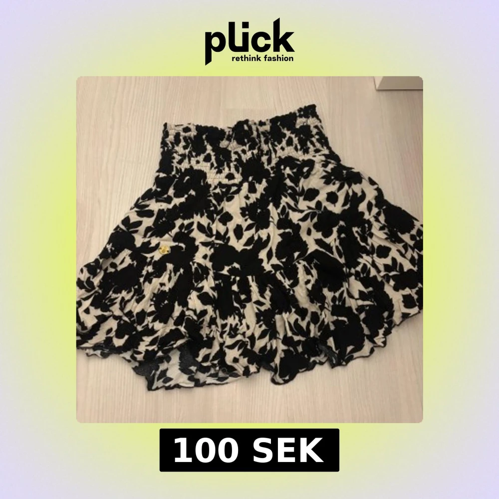 Supersöt kortkjol från Pernilla Wahlgren med svartvitt blommönster och volangkant. Kjolen har smock i midjan för en bekväm passform och är perfekt för dig som gillar en feminin och trendig stil. Lätt och luftig känsla, passar perfekt till sneakers eller sandaler. Pris kan diskuteras!