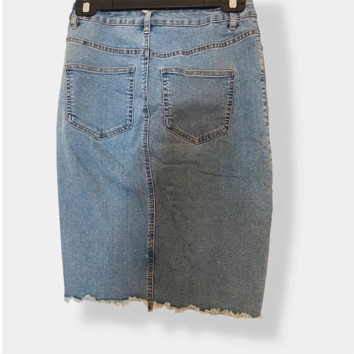 Snygg blå jeanskjol från Noisy May i klassisk modell med fem fickor och rå, fransig kant nertill. Kjolen har en liten slits framtill och är perfekt för dig som gillar en avslappnad och trendig stil.