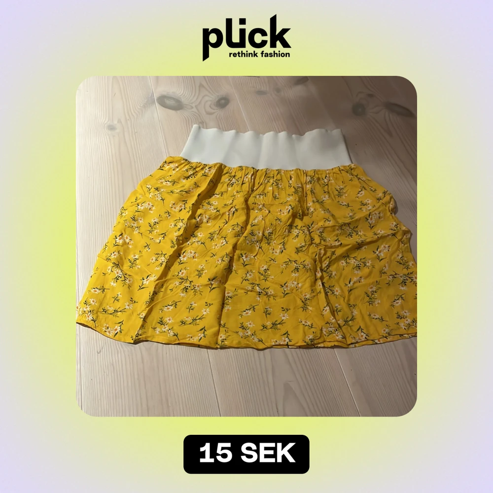 Superfin gul kjol med blommigt mönster, perfekt för sommardagar! Den har en bekväm vit resår i midjan som gör den lätt att bära. Kjolen är luftig och har en härlig sommarkänsla. Passar perfekt till en dag på stranden eller en picknick i parken. 🌼