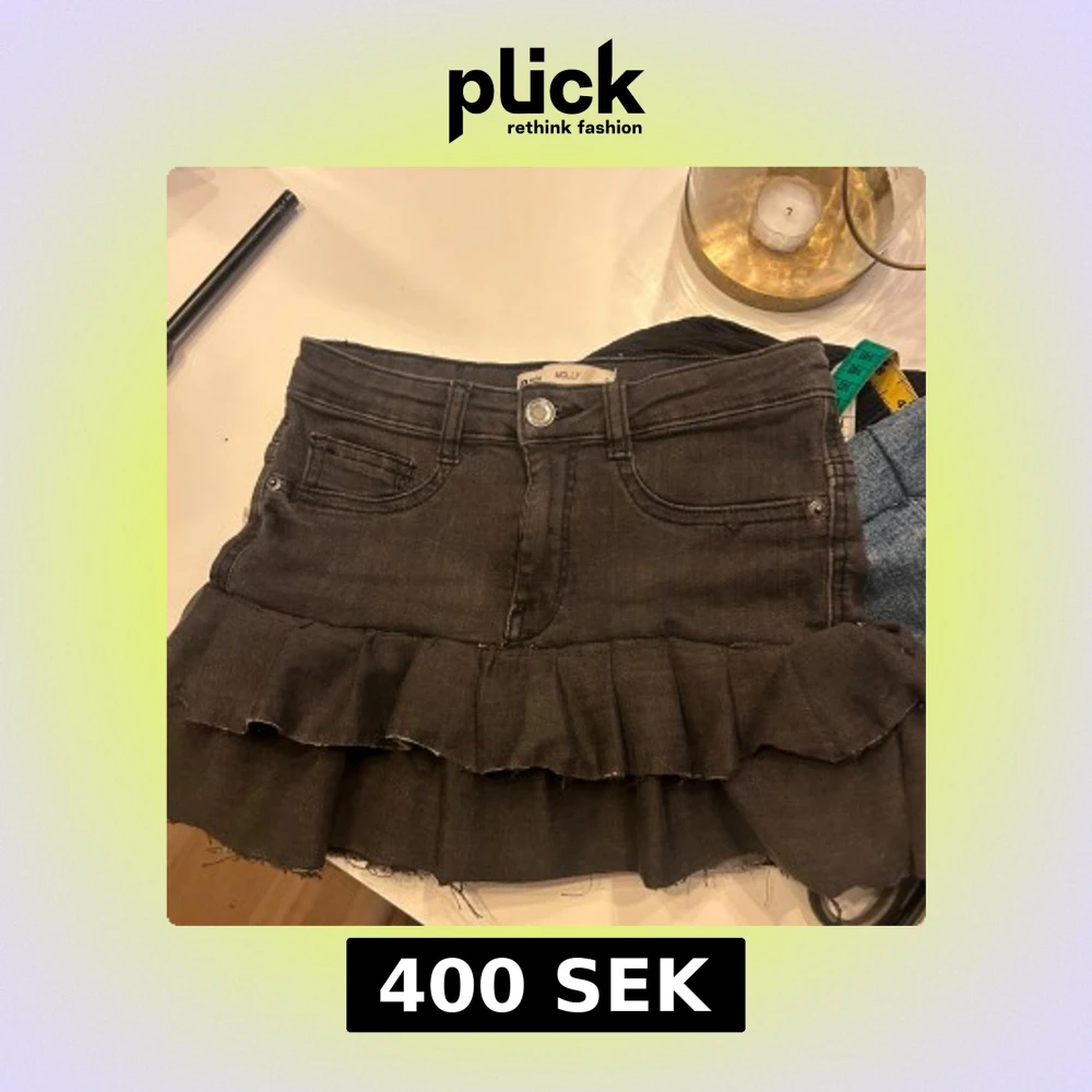 Supersnygg svart jeanskjol med volangkant, gjort den själv
