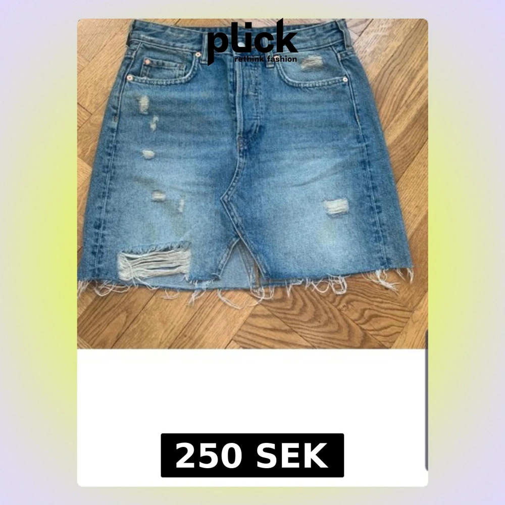 Säljer en blå jeanskjol med rå kant och slitna detaljer framtill. Kjolen har klassiska fem fickor, knapp och dragkedja samt fransig nederkant för en avslappnad look. Perfekt för dig som gillar en trendig och edgy stil.