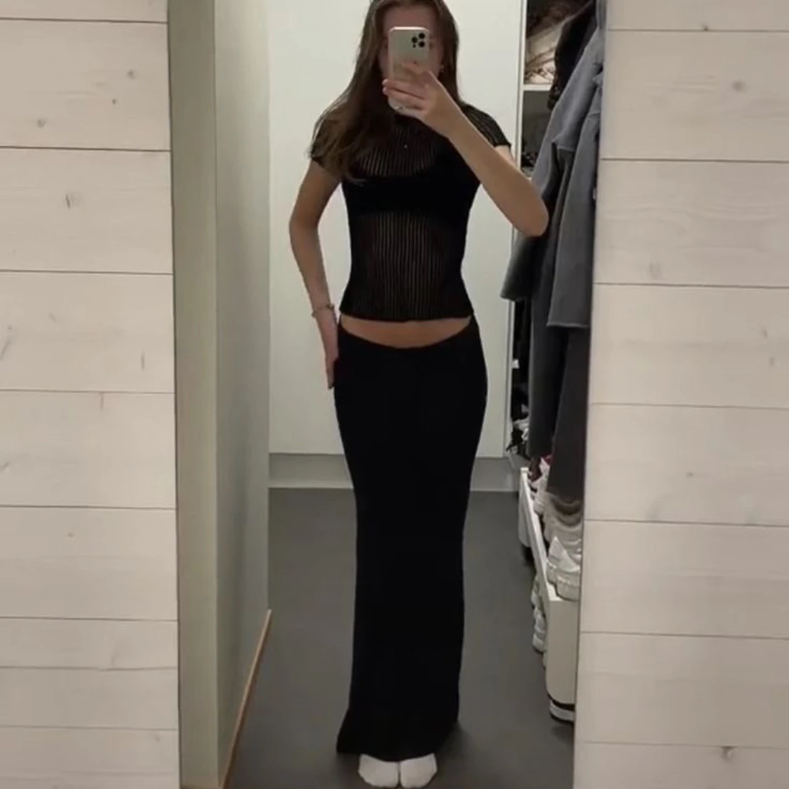 svartmaxikjol, helt oanvänd endast testad! Storlek s men passar även om du är m! skriv vid funderingar:)