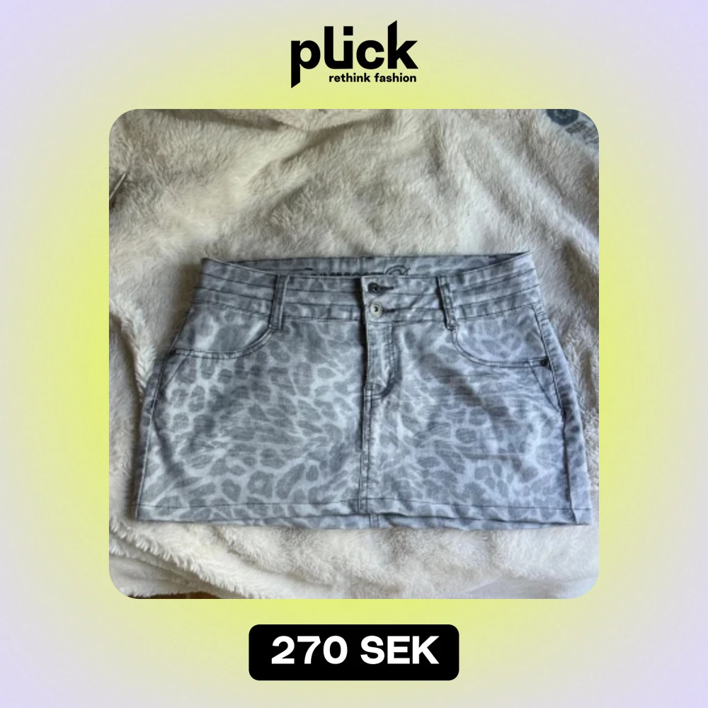 Grå leopardmönstrad jeanskjol, uppsydd nertill, bra skick💞 40cm i midjan
