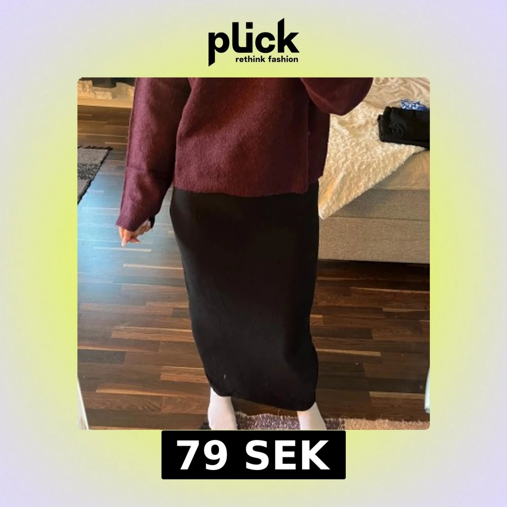 Säljer en svart långkjol. Kjolen har en rak och tight passform som sitter snyggt längs kroppen. Materialet känns mjukt och följsamt. ❤️