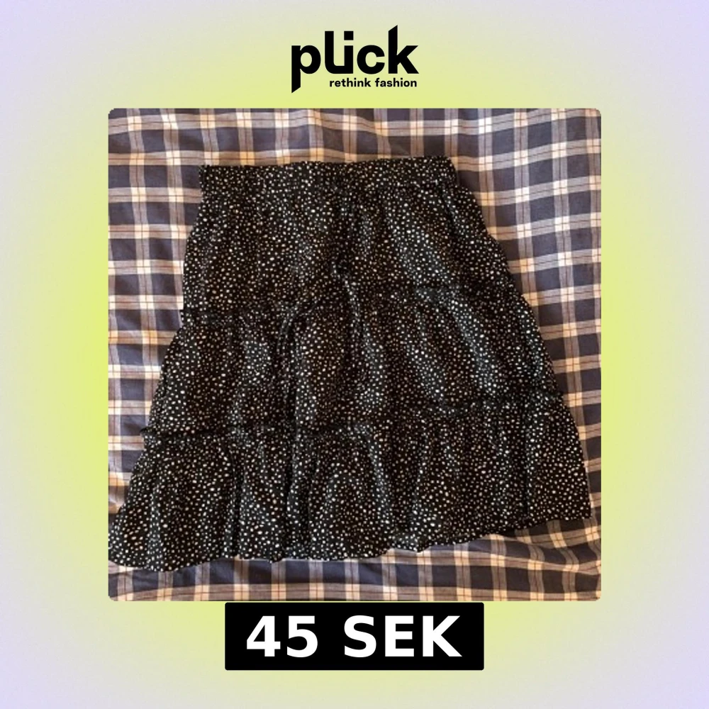 Snygg svart kjol med vita prickar och volanger. Perfekt för en trendig look. Resår i midjan för bekväm passform.