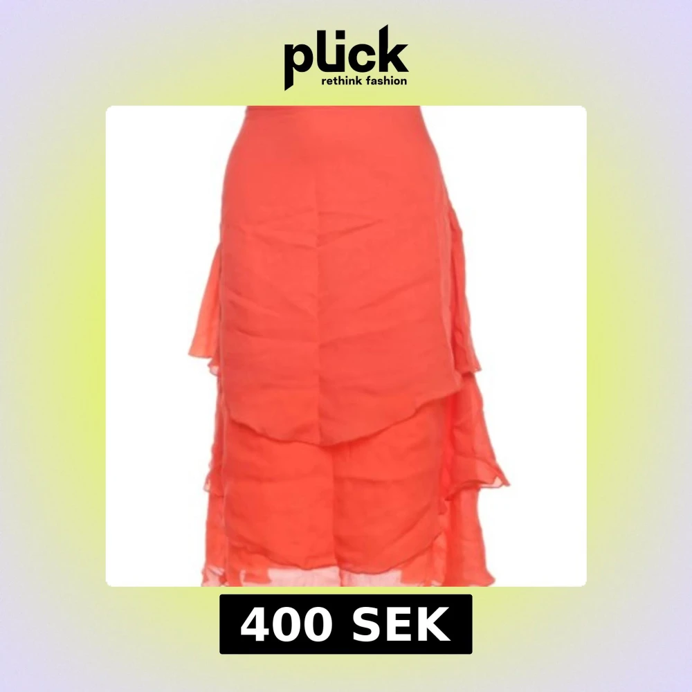 Snygg orange kjol från Custommade med volangdetaljer. Kjolen har en omlott-design som ger en fin rörelse och är perfekt för varma dagar. Den är tillverkad i Sidenl.