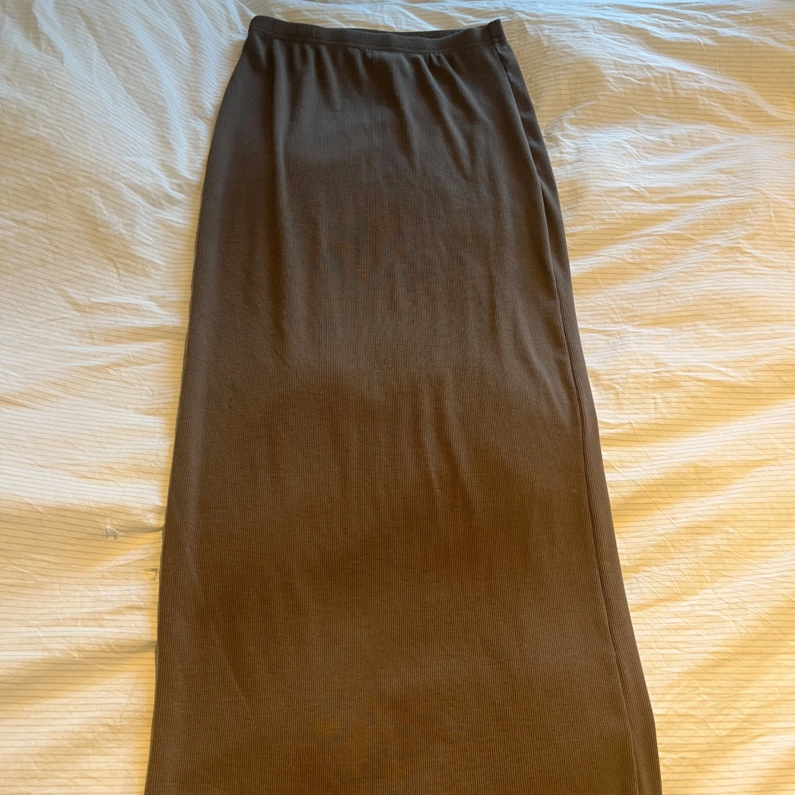 Säljer en brun långkjol med ribbad struktur. Kjolen har en enkel och stilren design med resår i midjan för en bekväm passform. Perfekt för dig som gillar en minimalistisk look.