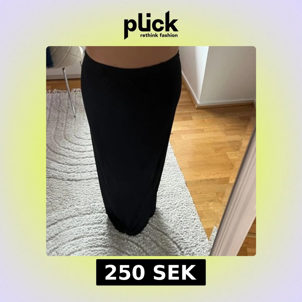 Enkel och stilren svart långkjol med rak passform och resår i midjan. Kjolen är figurnära upptill och faller snyggt längs benen. Perfekt för dig som gillar minimalistisk stil och vill ha en klassisk bas i garderoben.