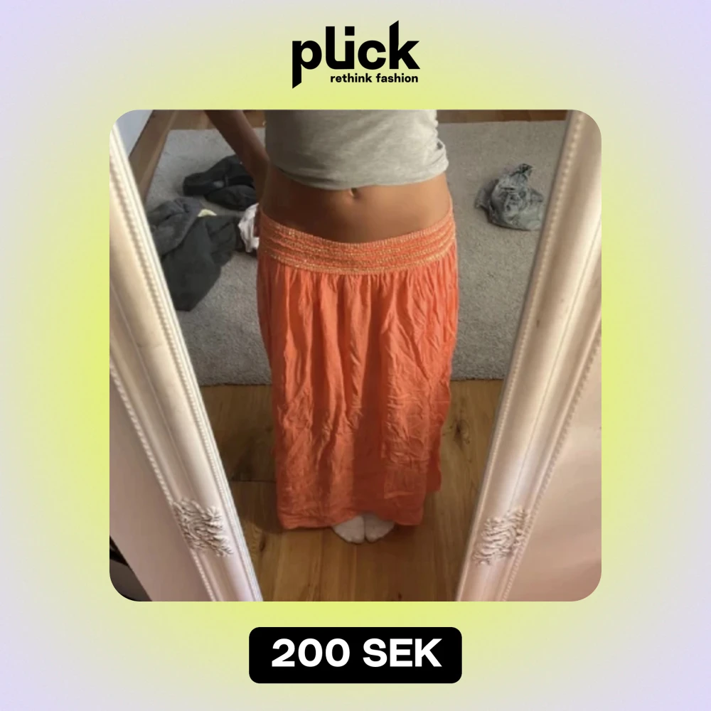 Jättesnygg långkjol jag köpt här på plick, tyvärr för kort på mig som är 165cm, så rekommenderar att nån som är runt 160cm att köpa om man vill att den ska nå till marken! I verkligheten är den mer neonrosa🩷 stretchig i midjan! (Lånad första bild)