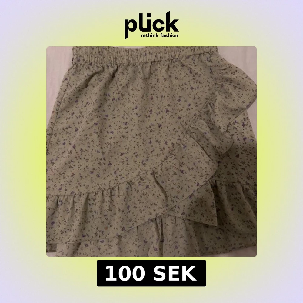 Söt blommig kjol i ljusgrön nyans med smÄ blommor i lila och brunt. Kjolen har en volangdetalj framtill och elastisk midja för en bekvÀm passform. Perfekt för vÄr och sommar!