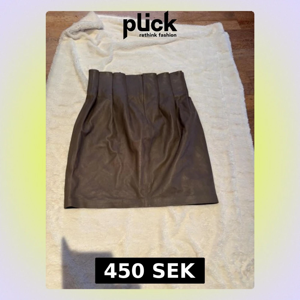Snygg brun kort skinnkjol från Saint Tropez i storlek M. Kjolen har hög midja med breda veck upptill och en diskret dragkedja bak. Materialet är mjukt och ger en cool vibe, perfekt för dig som gillar stilrena plagg med edge. Färg: mullvad. Skick : 10/10