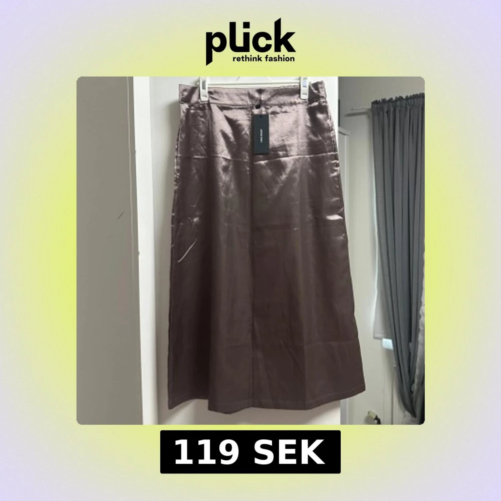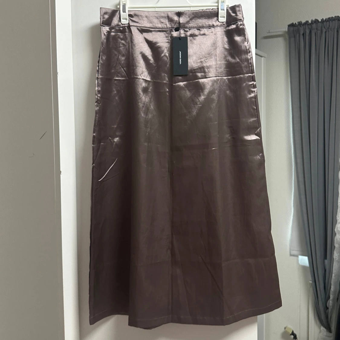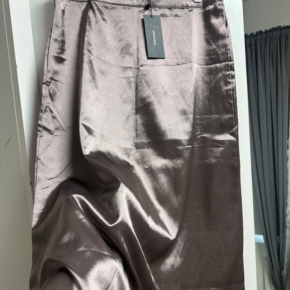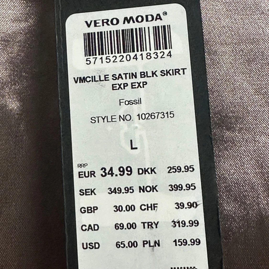 Säljer en glansig långkjol i satin i färgen fossil från Vero Moda. Oanvänd med etikett på.