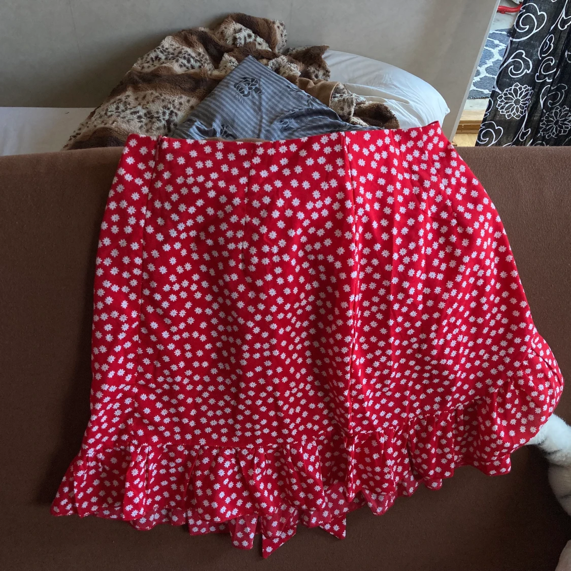 Oanvänd röd kjol