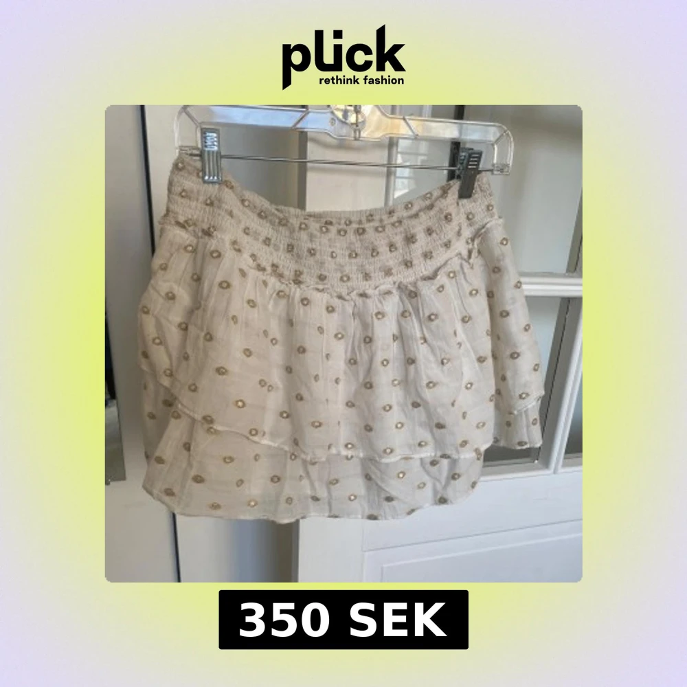 Supersöt vit kjol med guldiga prickar och bred smock i midjan. Kjolen har volangdetaljer och är gjord i ett lätt, transparent material som ger en luftig känsla. Perfekt för dig som vill sticka ut lite extra!