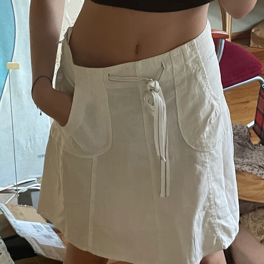 Säljer nu min linneskjol som är helt ny bara använt två gånger. Storlek S använder den fint då det finns knytsnören. Köptes på Sinsay för 400kr säljs nu för 150kr +frakt 20kr