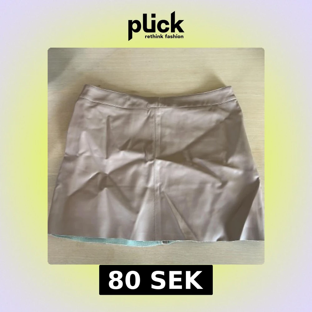 Snygg beige kortkjol i skinnimitation med stilren design och raka sömmar. Perfekt för dig som vill ha en trendig och clean look. Kjolen har en enkel passform och är lätt att matcha med olika toppar och jackor.