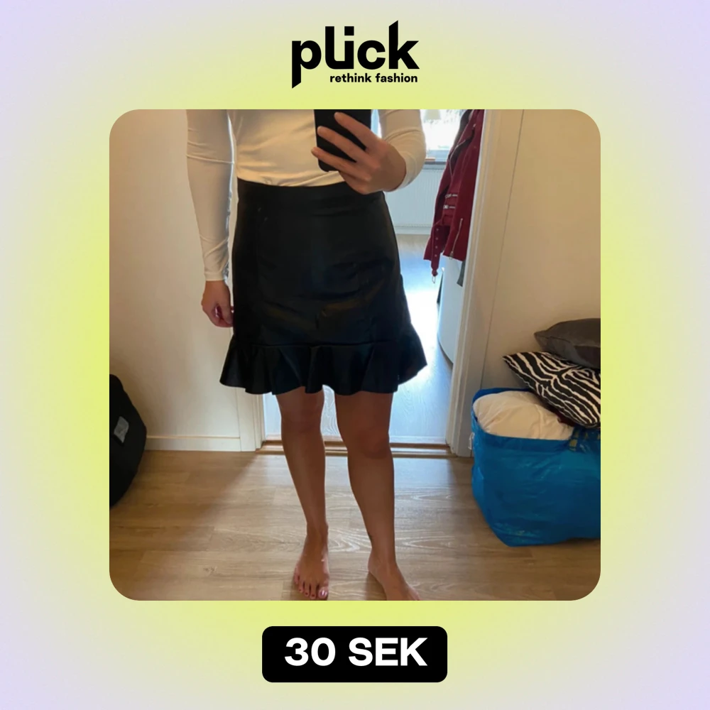 Kjol i skinnimitation från hm. Storlek 38(divided). Med volang och dragkedja baktill.