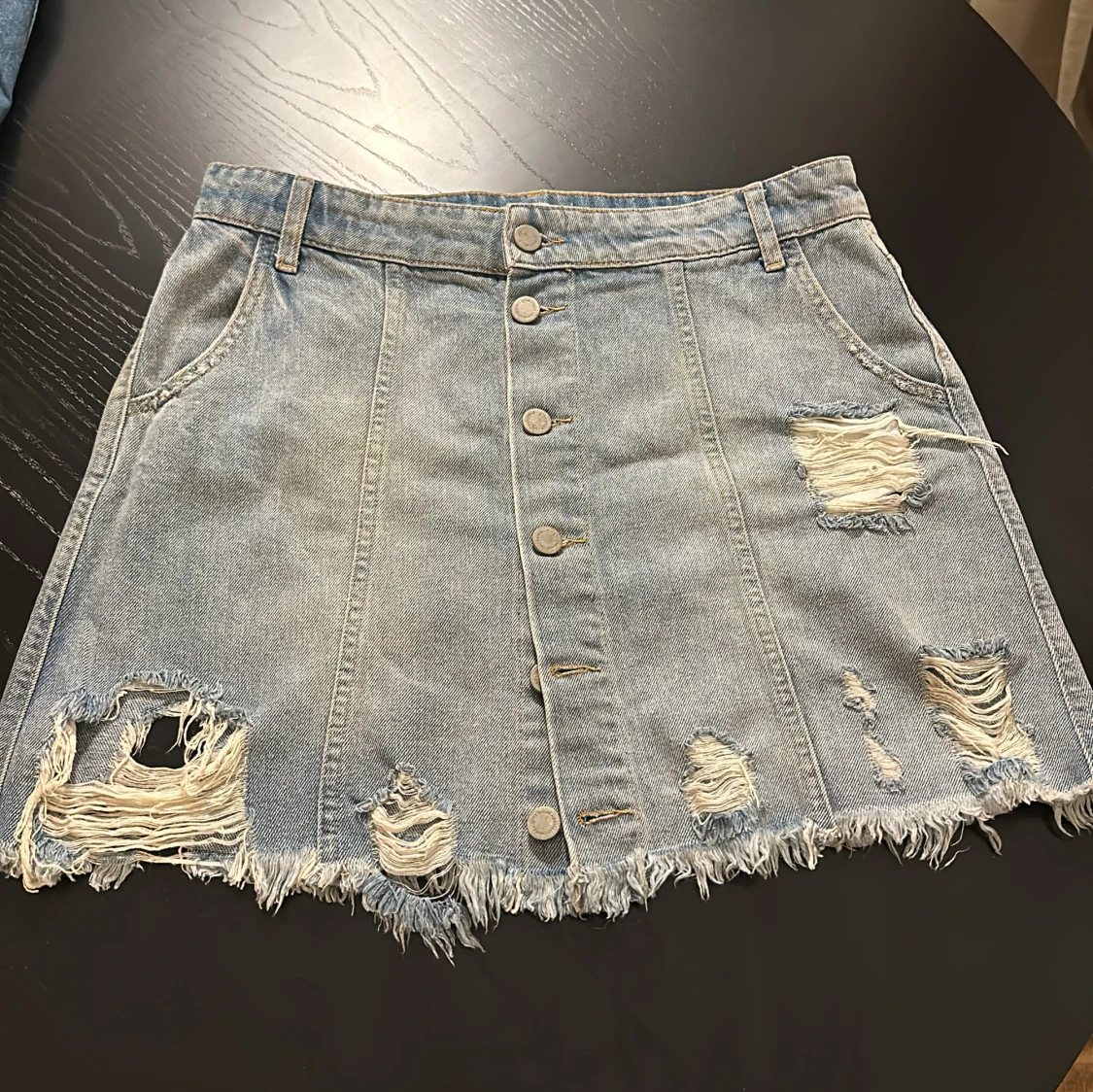 Jeanskjol från Gina tricot, går att knäppa ända ner och även knäppa upp. Väldigt fint skick! Storlek 40
