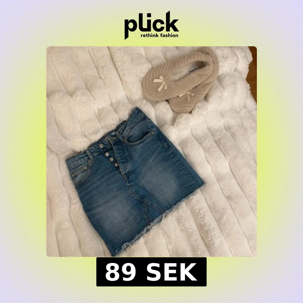 Snygg jeanskjol från Gina i klassisk blå denim. Kjolen har en kort längd med fransig nederkant och knappar framtill. Perfekt för en avslappnad stil.