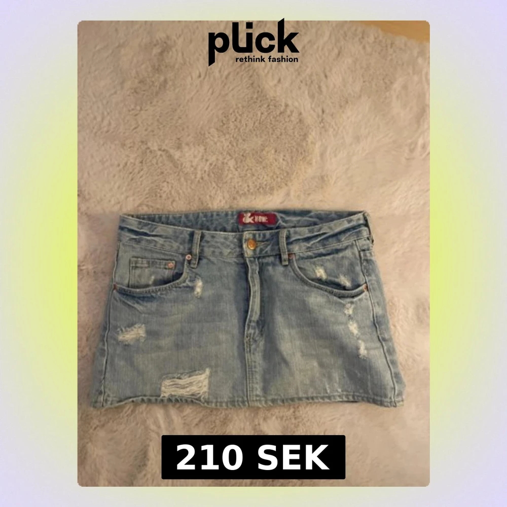 Jätte cool jeans kjol som är köpt på vinted och sparsamt använd av mig, super fint skick. Älskar den men den har tyvärr blivit för liten för mig nu. Storleken sitter lite tajt på mig som brukar ha S så skulle säga att den passar nån som har storlek Xs. Midjemåttet är 41cm och längden är 30cm!!😊😊🫶🏻