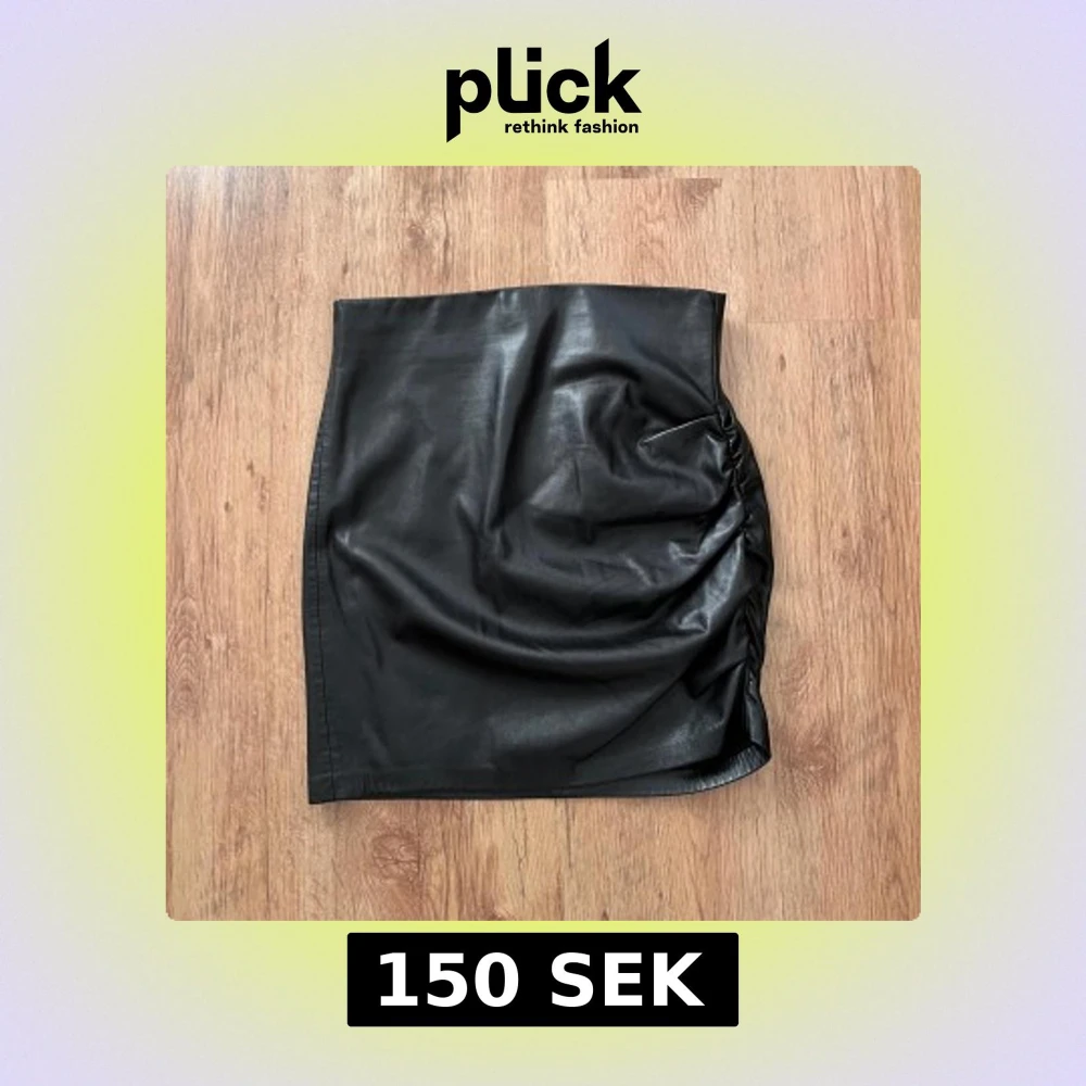 Säljer en svart kortkjol från Zara i skinnimitation med snygg rynkdetalj på ena sidan. Kjolen har en tight passform och är tillverkad i polyester. Perfekt för dig som gillar en edgy och trendig stil.