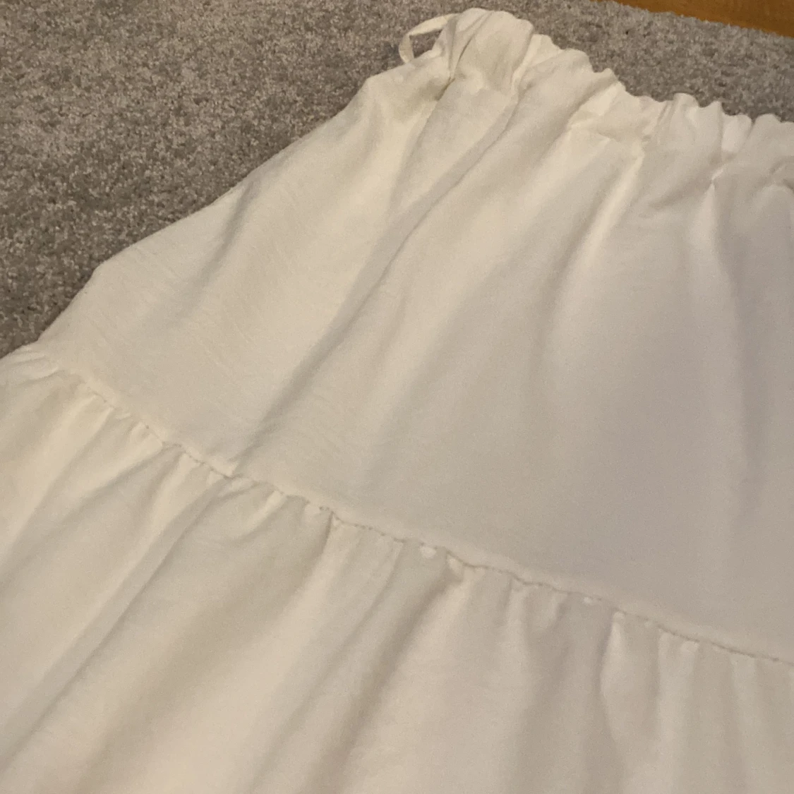 Fin långkjol, perfekt nu till sommar o vår. Köpt utomlands och är onesize men passar xs-s kanske även M. Använd fåtal gånger. Inga defekter. Lite genomskinlig men går att lösa med ett par beiga eller vita cykelshorts.