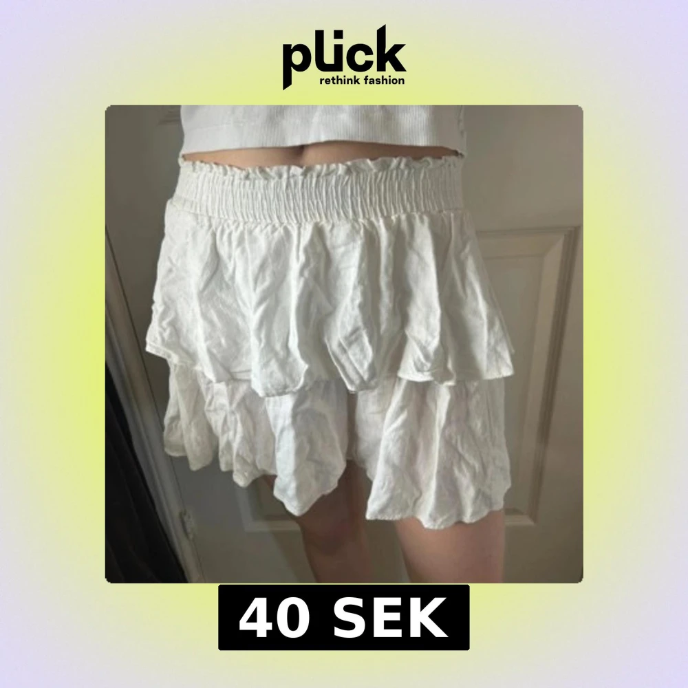 Supersöt vit kortkjol med dubbla volanger och bred resår i midjan. Kjolen har en luftig känsla och är tillverkad i ett luftig tyg. Skriv vid intresse! 🌸