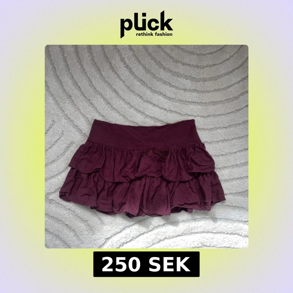 Supersöt vinröd kortkjol med dubbla volanger och bred midja. Midjemått ser ni på bilden