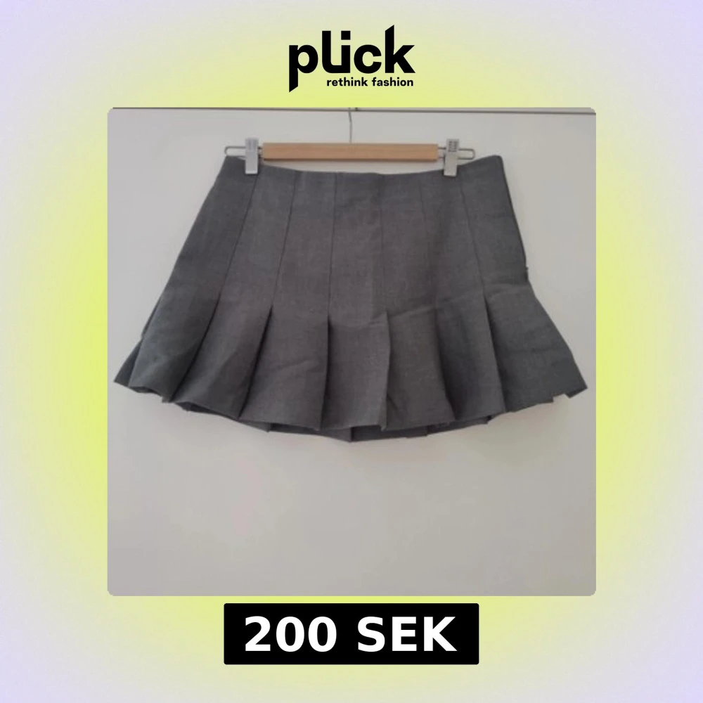 Snygg grå kortkjol med breda plisserade veck. Kjolen har en klassisk och stilren look som passar perfekt till sneakers eller boots. Enkel att matcha med både stickade tröjor och t-shirts för en trendig vibe.