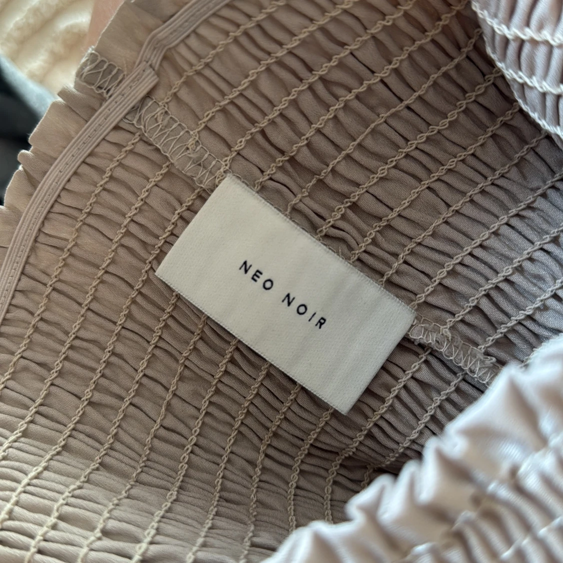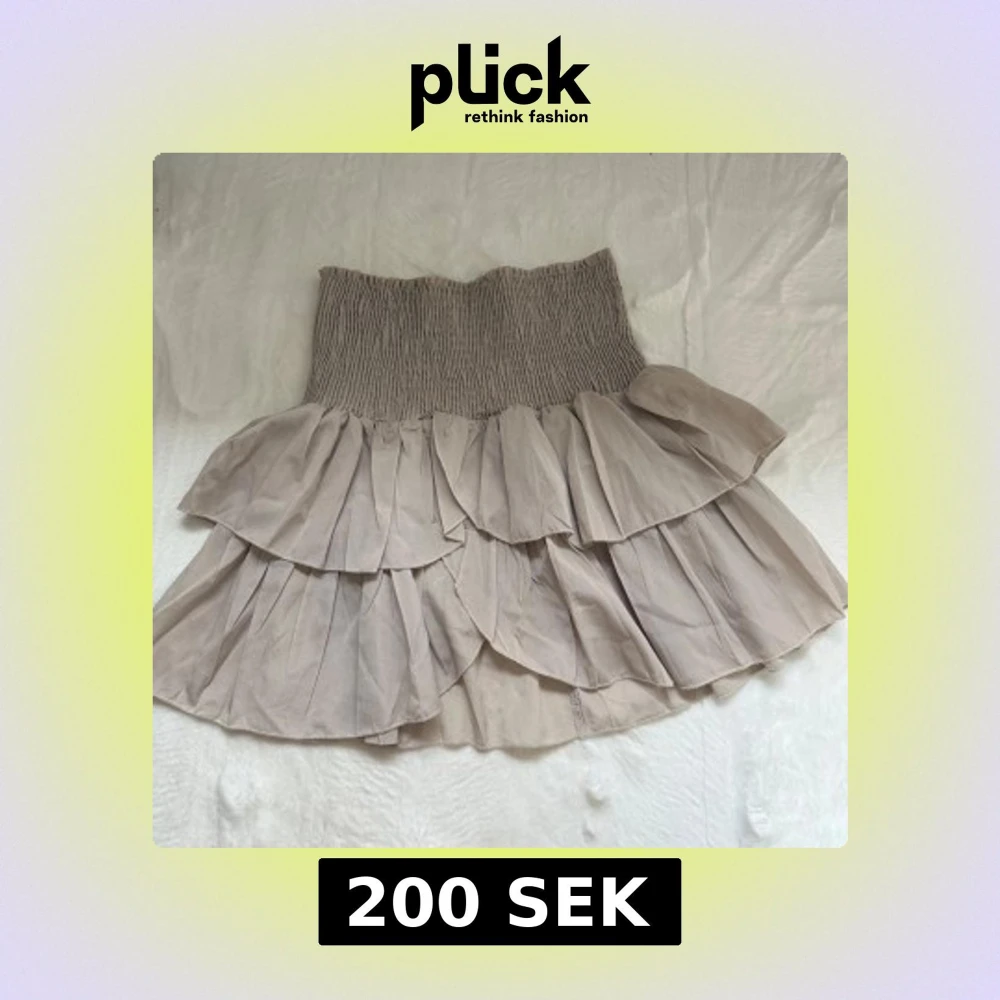 Supersöt beige kortkjol från Neo Noir med bred smock i midjan och flera lager volanger. Xs/s