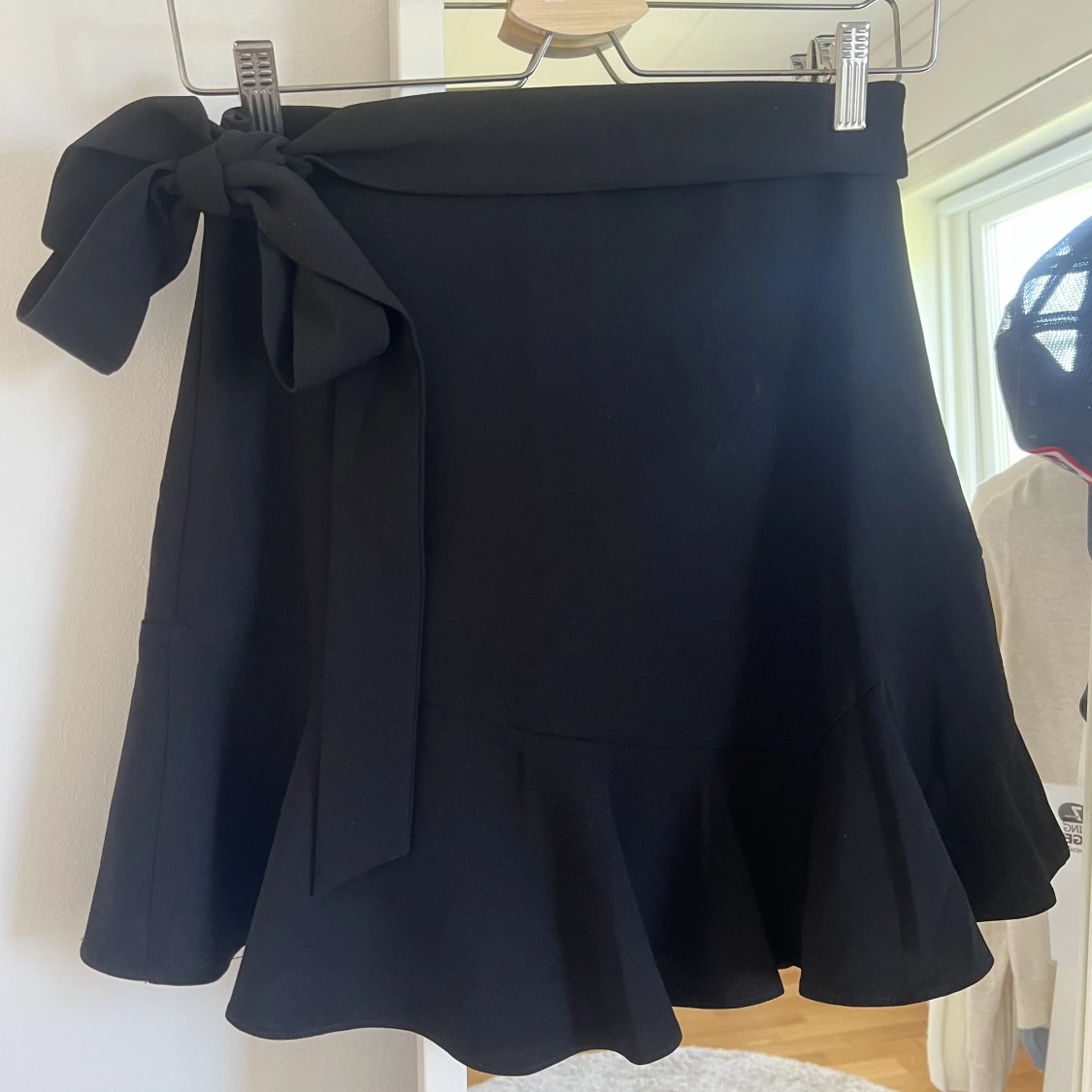 svart kjol med volang nedtill, knytning runt midjan och dragsko💓sparsamt använd utan defekter!