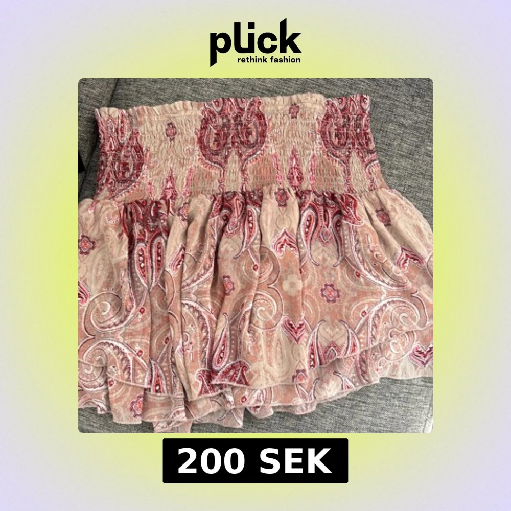Superfin kortkjol i rosa och beige toner med paisleyinspirerat mönster. Kjolen har en smockad midja.🩷pris kan diskuteras