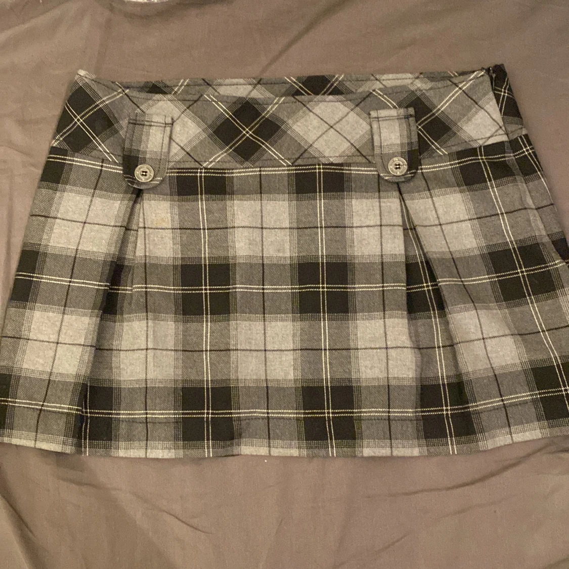 rutig kjol som är lite kort! den har ingen lapp på storlek men skulle säga att den passar som S!
