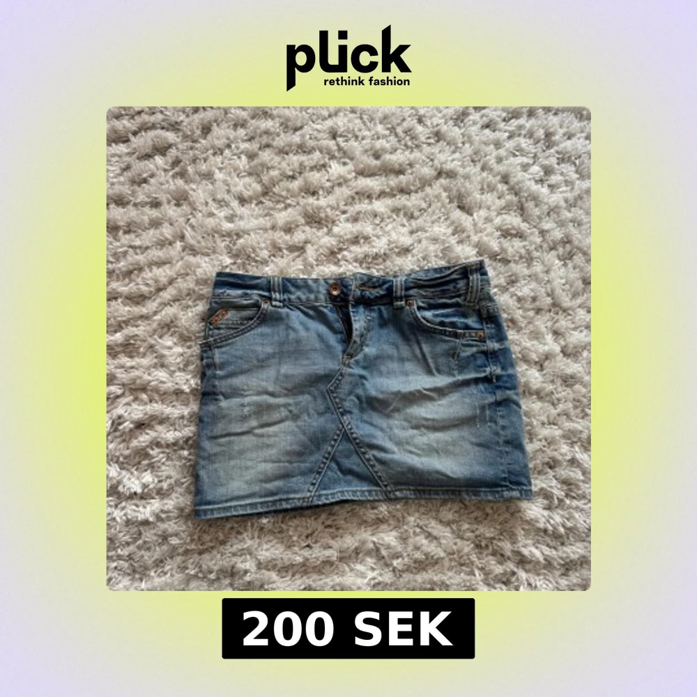 Säljer denna så snygga jeanskjol. Mått: längd 33cm, midja 37cm