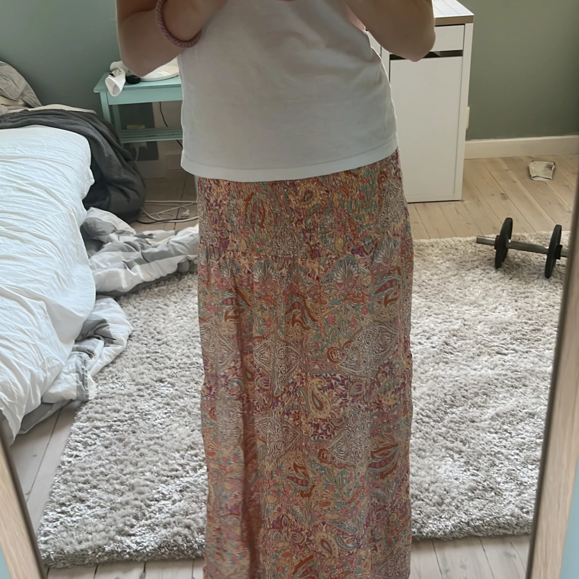 Säljer en långkjol från Marta de chateu med färgglatt paisleymönster i rosa, lila, beige och grönt. Kjolen har smock i midjan och är gjord i ett lätt och luftigt material, perfekt för varma dagar. Superfin att styla med en enkel topp eller stickad tröja. Säljer eftersom den ej kommer till andvändning!☀️