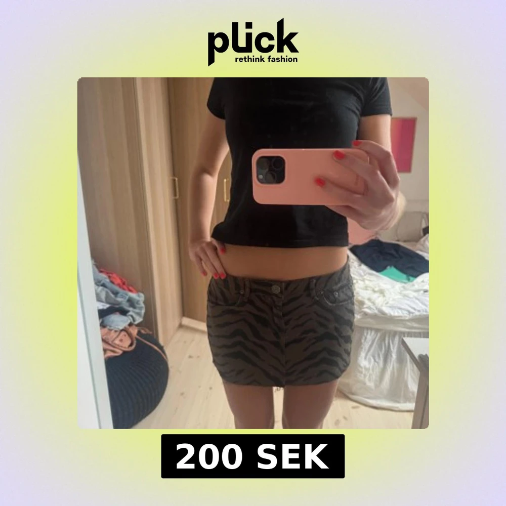 Minikjol med zebra tryck. Skulle säga att den är lite grön/brun