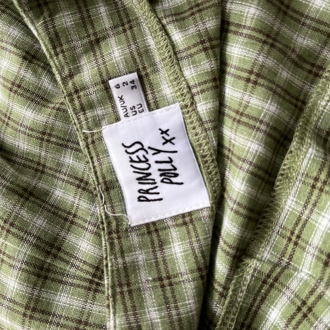 Söt rutig grön skjul med en slits. Använd ett par gånger men inget som syns. Från märket princess polly, ett amerikanskt märke med fina kläder.