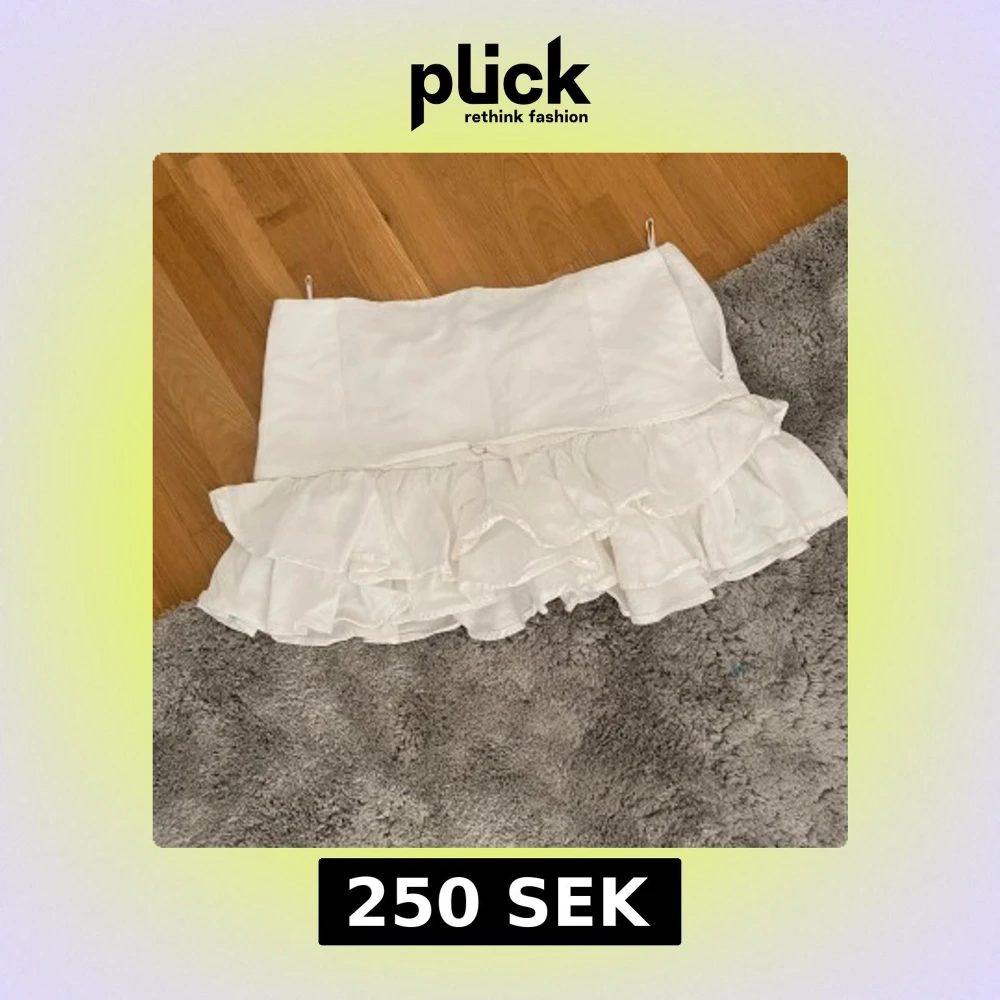 Supersöt vit kortkjol från Zara med dubbla volanger och en lätt A-linjeform. Kjolen är gjord i ett mjukt bomullstyg som känns luftigt och fräscht. Perfekt för dig som gillar romantiska detaljer och vill ha en kjol som sticker ut med sin volangkant. Passar även S