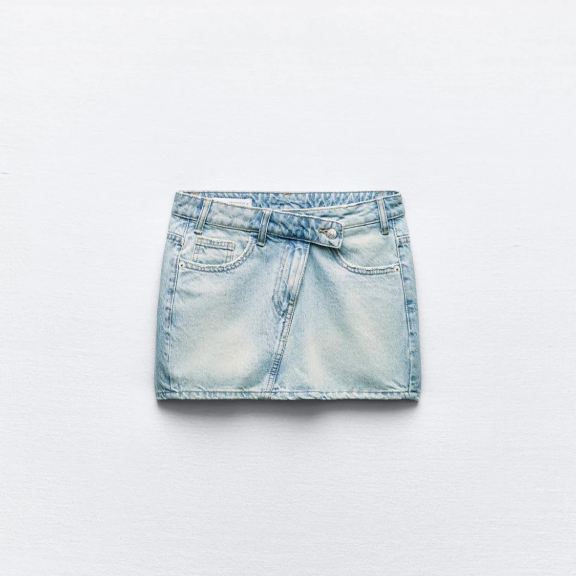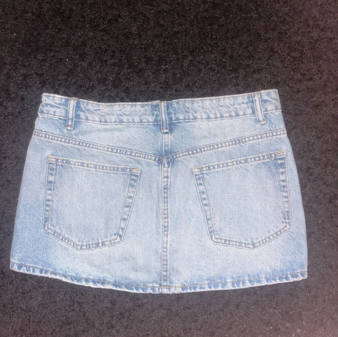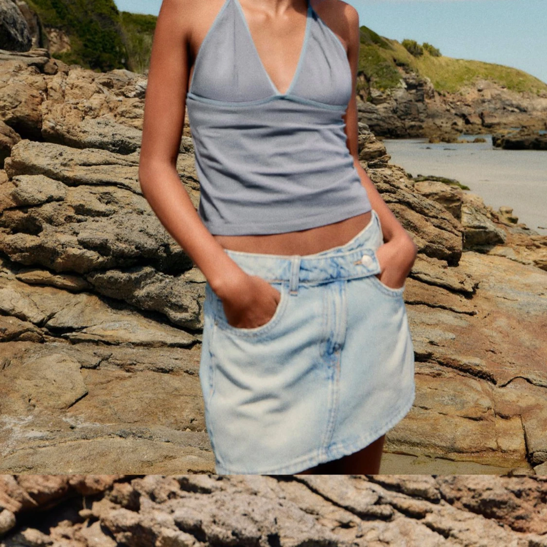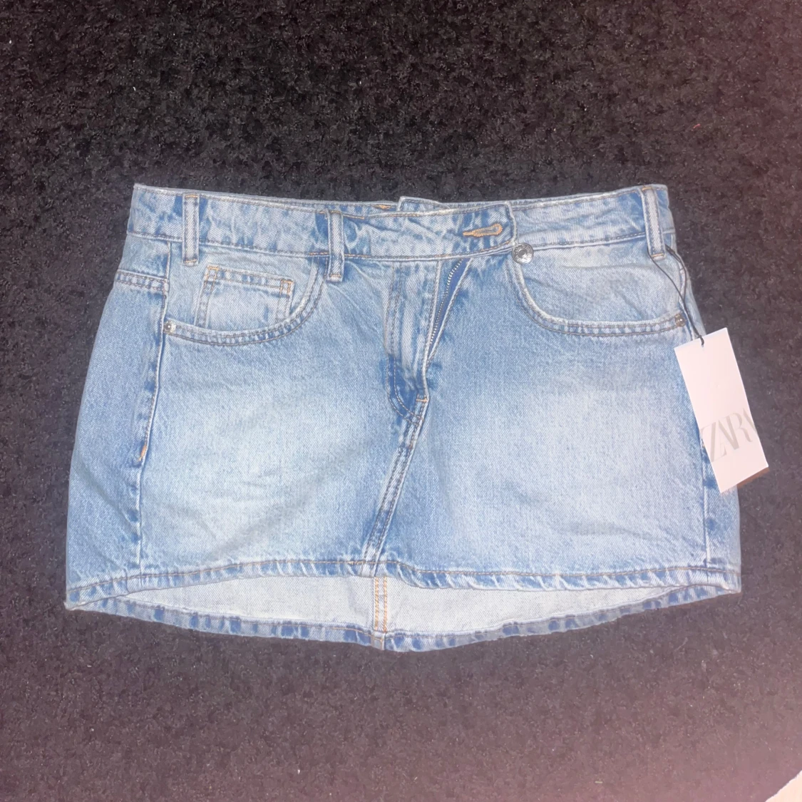 Trendig blå jeanskjol från Zara i kort modell. Kjolen har klassiska femficksdetaljer och en knappgylf. Aldrig använd och prislapp kvar. Slut i de flesta storlekarna på hemsidan💕