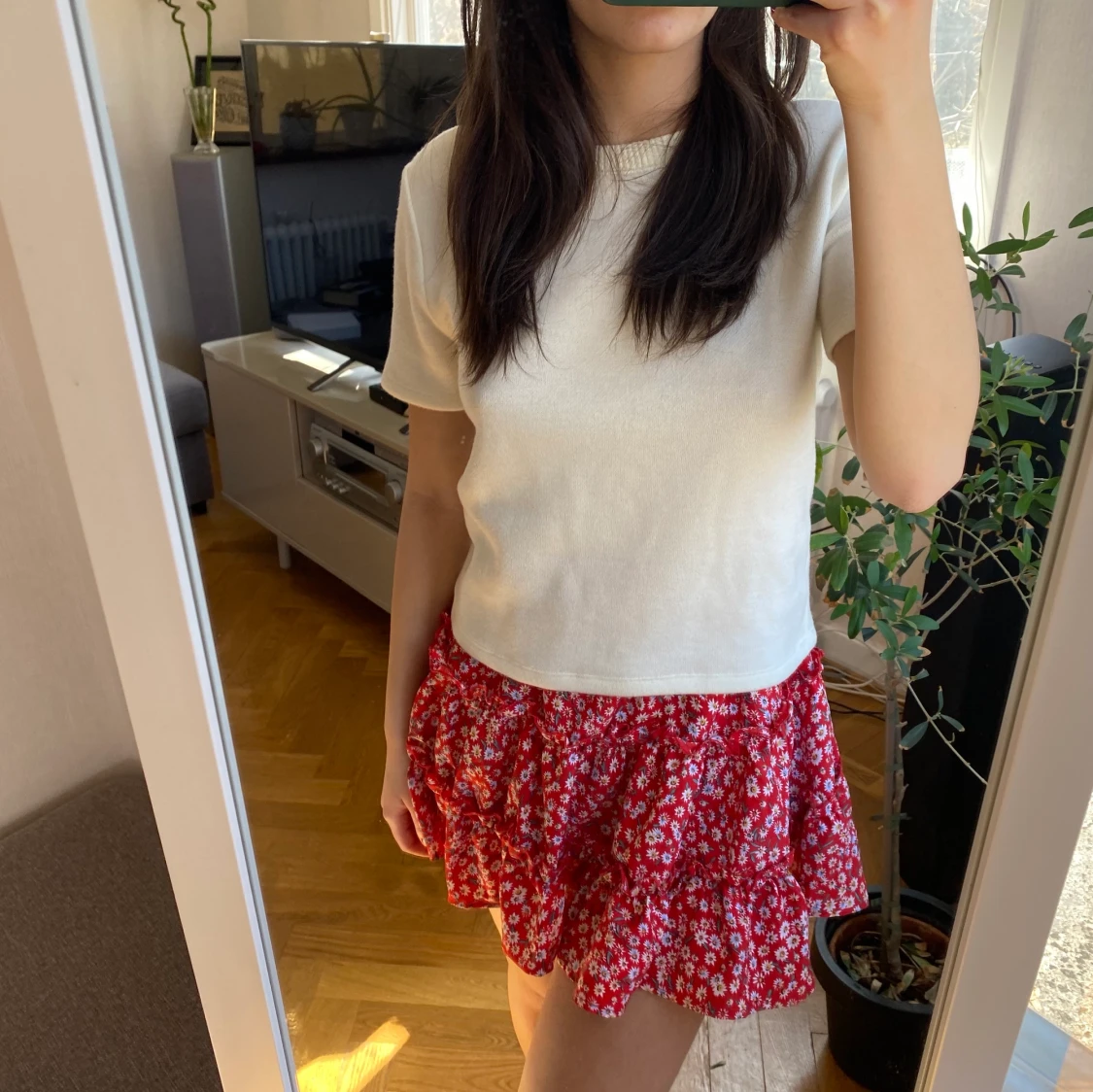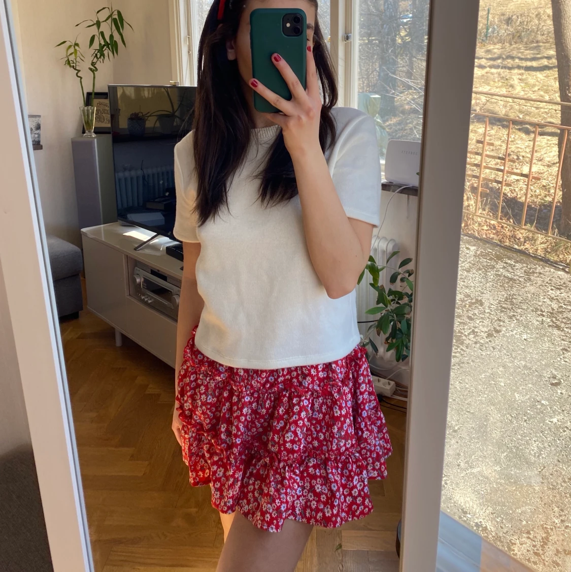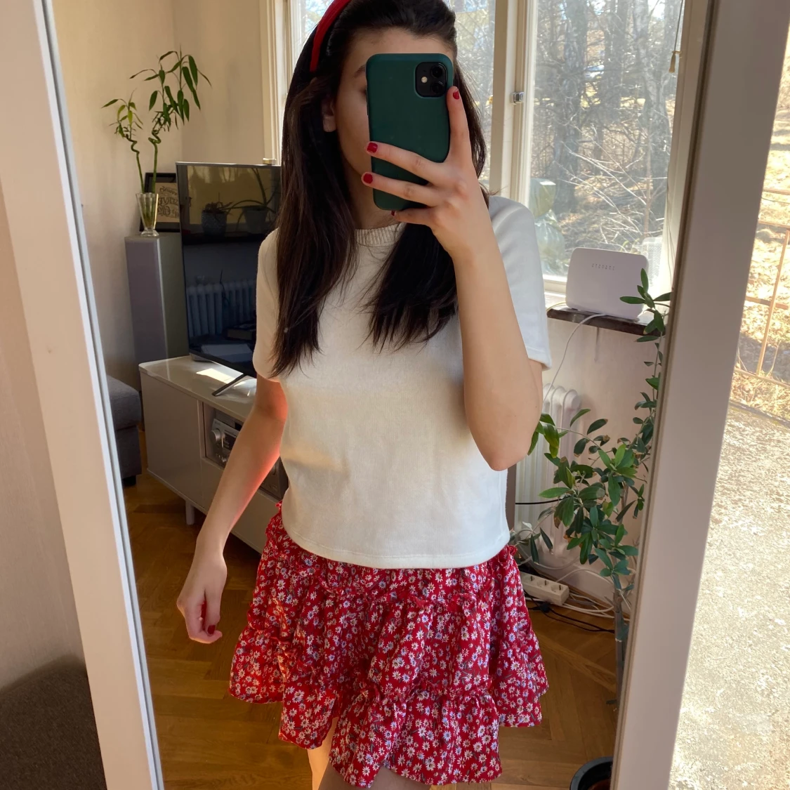 En söt röd mönstrad kjol som inte har kommit till anvädning! Super skick och jätte fin men tyvärr inte min stil. Pm för frågor! 🫶🏻💕