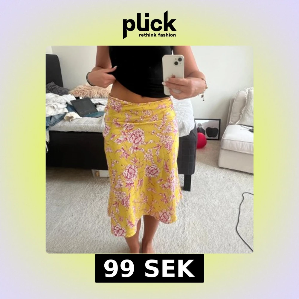 Säljer denna fina gula satinkjol med rosa/vitt mönster! Kjolen är i midilängd så slutar vid knäna, och har en dragkedja vid midjan😍 den köptes för längesedan och har lite få skavanker varav priset, men inget som märks❤️ Kom gärna med prisförslag🥰