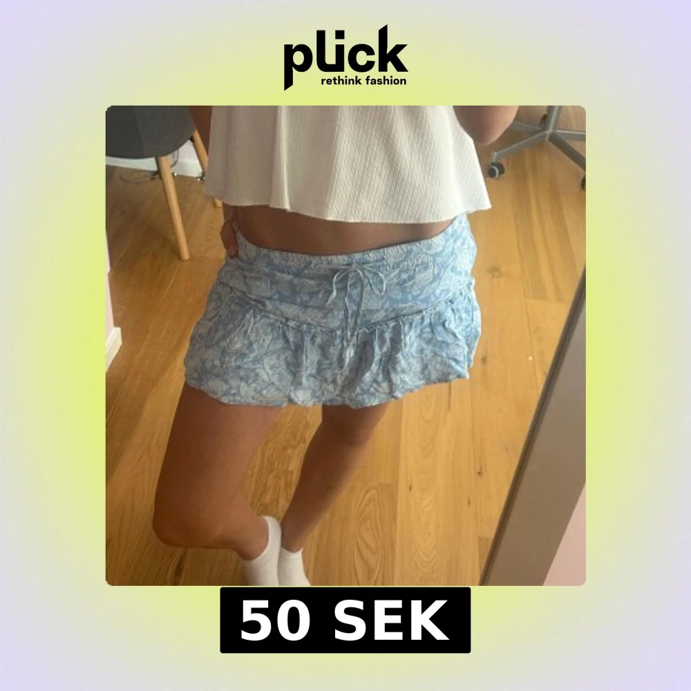 Supersöt ljusblå kortkjol med vitt paisleymönster, snörning i midjan och volangkant. Det är ”inbyggda” shorts i kjolen, så den är super bekväm och skön!!💕💕
