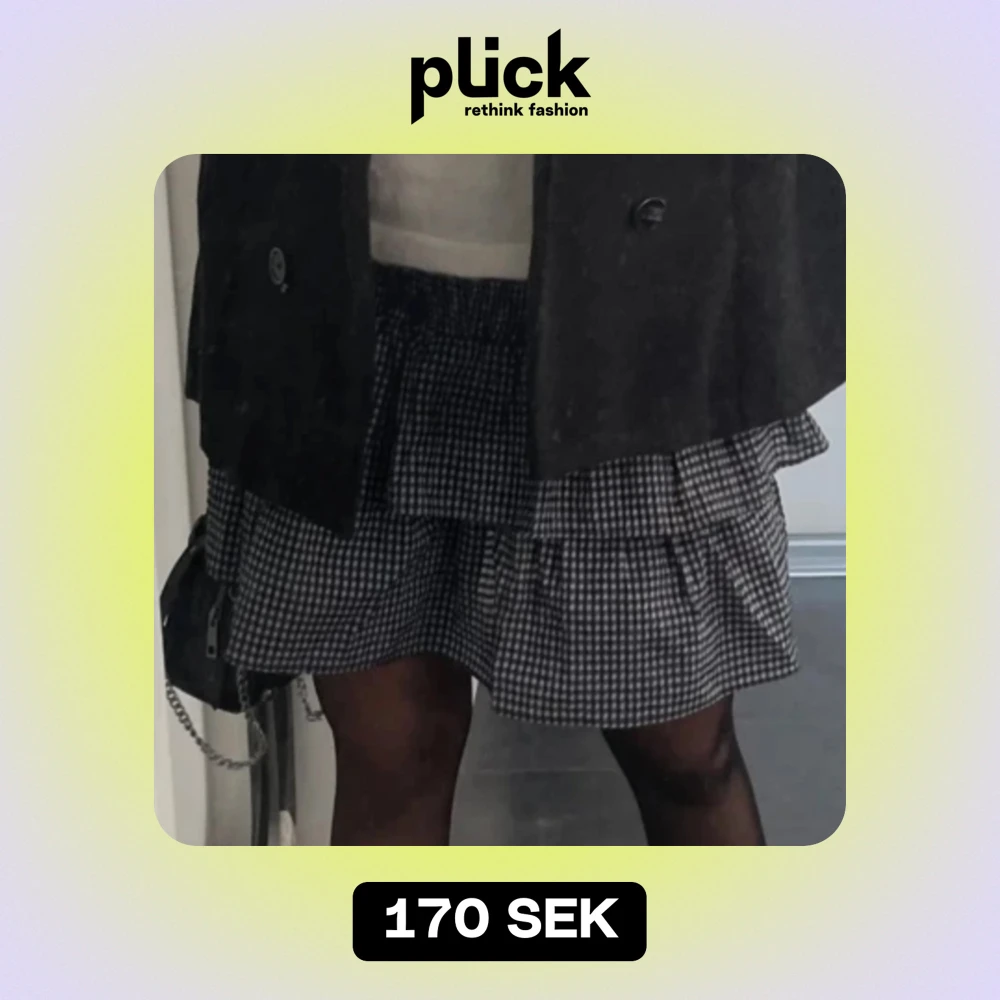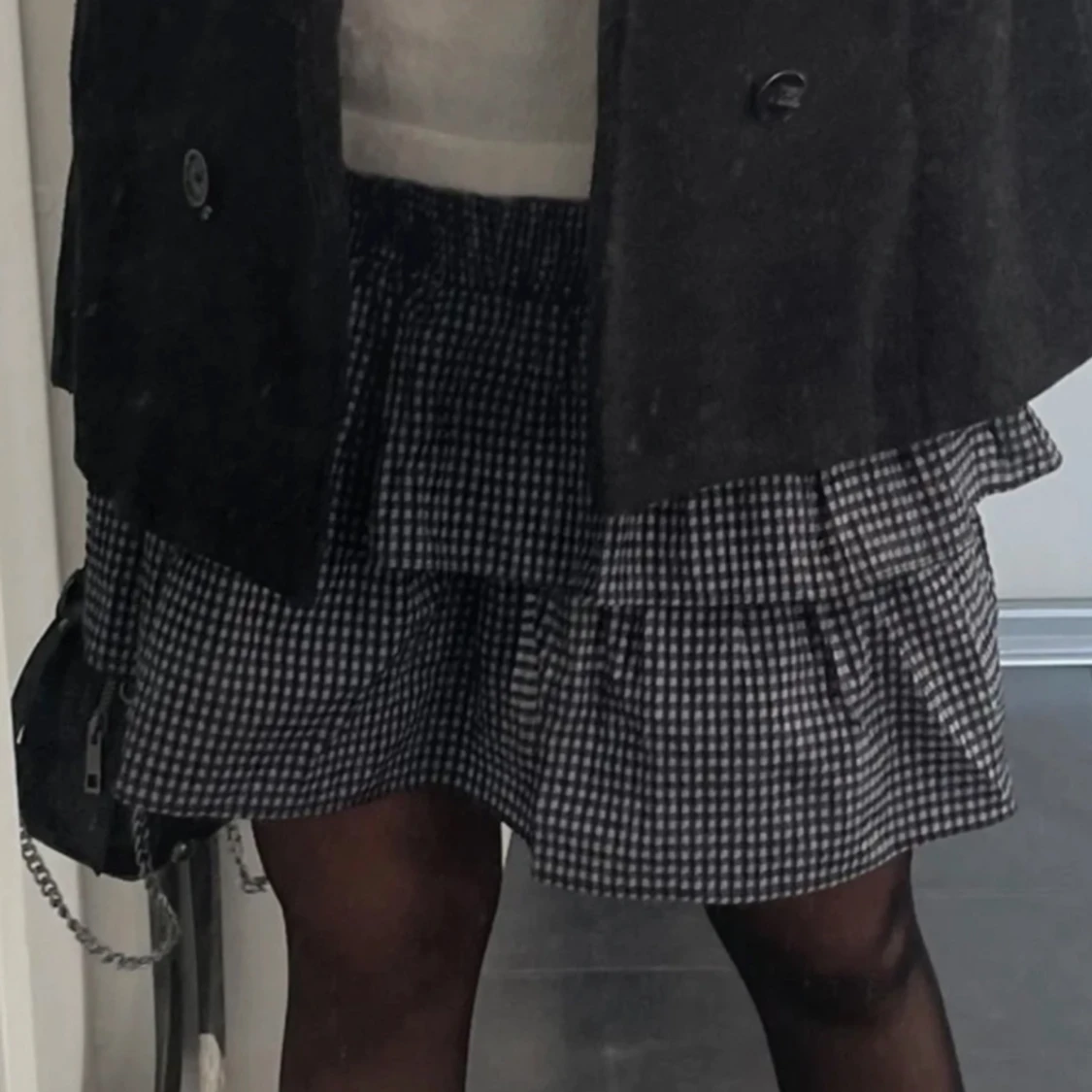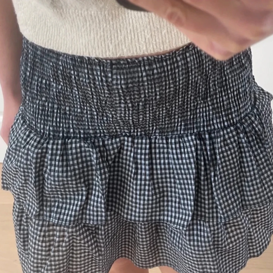 Supersöt rutig volangkjol till sommaren från märket ”Neo noir”! Står ingen storlek men skulle säga att den passar allt från XS-M då den har resår i midjan💗