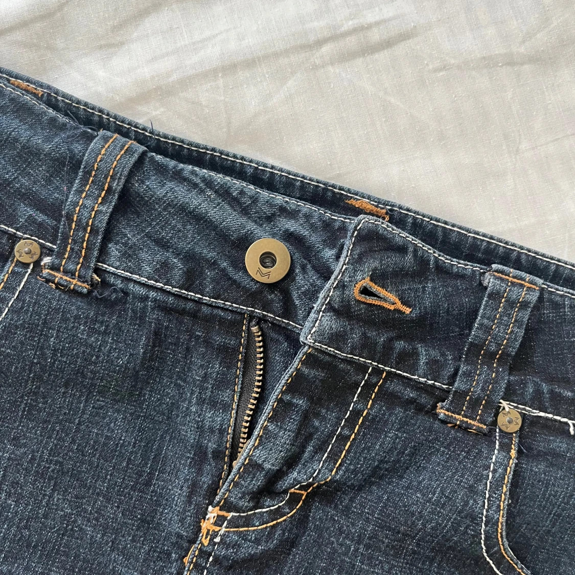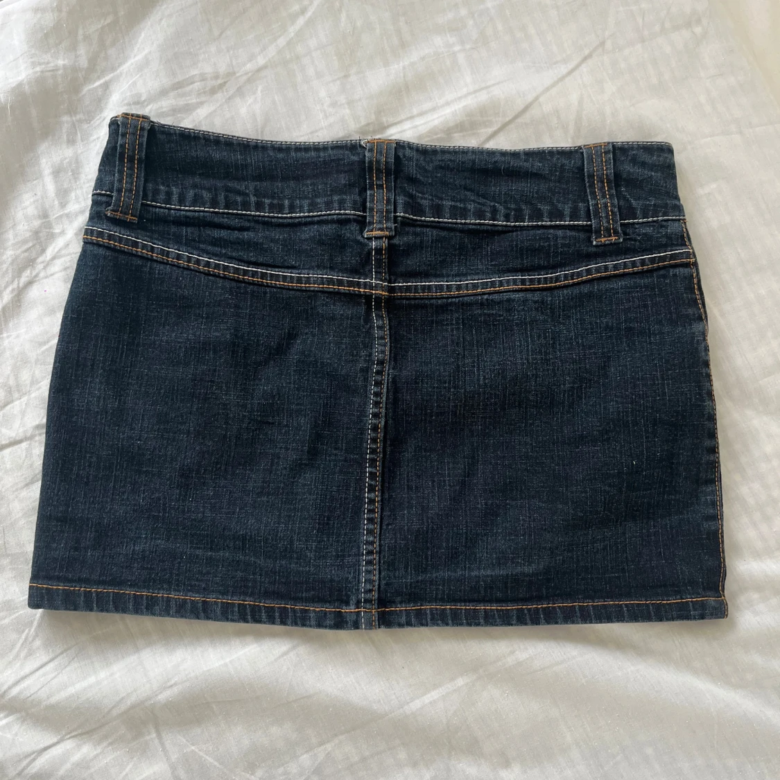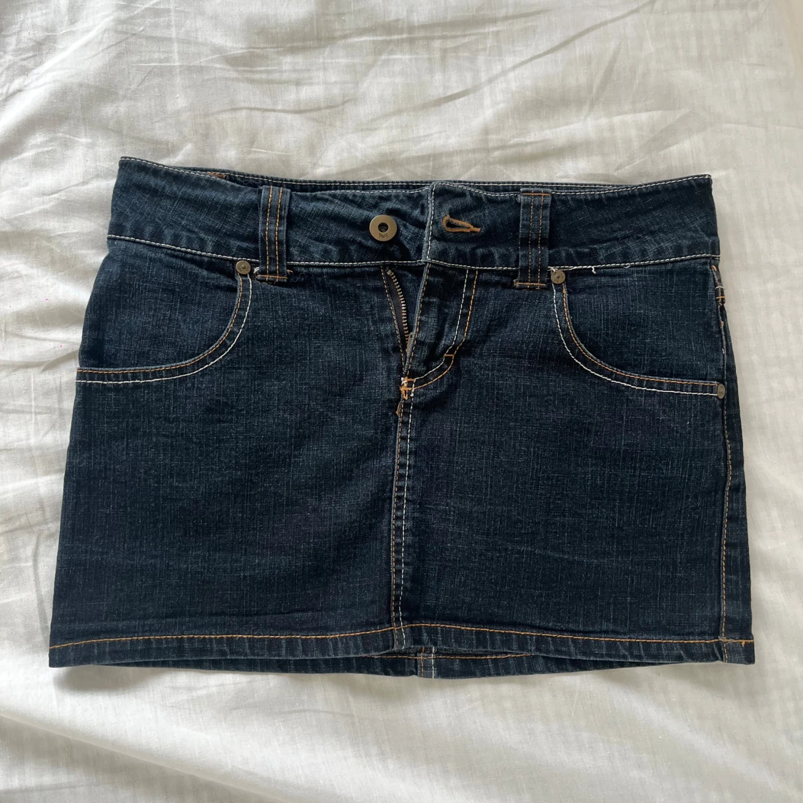 kort jeanskjol i mörkblå färg💕i jättebra skick men tyvärr blivit för liten för mig😩midjemått ca 37-38 cm tvärs över vid höfterna.
